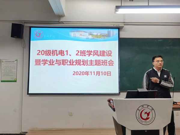 11月10日、12月10日,兰学强给2020级学生召开“师生面对面”主题班会,他强调同学们进了大学不等于进了保险箱,应该好好地对自己的职业发展做好规划,一步一个脚印地踏实学习。面对严峻的就业形势,同学们要不断提升自己的就业竞争力,把专业知识学的扎实,打铁还需自身硬。兰学强结合自身工作经历,向学生阐述了理想与现实的差距,分析了机械类专业的就业出路,给学生讲述了许多关于青春的故事以及对于未来的憧憬计划,让每一个同学都对自身有所思考和对未来有所规划。