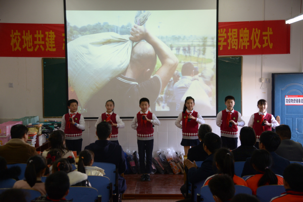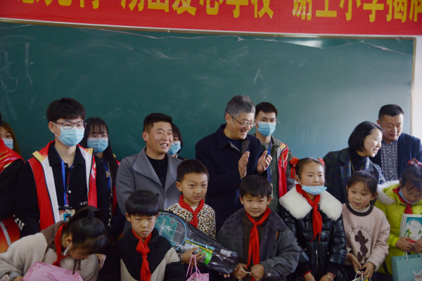 活动最后,校党委副书记阮爱民、散兵镇镇长曹德明与志愿者们共同为谢王小学“汤山爱心学校”揭牌。