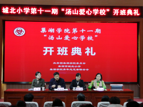为扎实稳步推进“汤山爱心学校”爱心支教活动,3月20日上午,华体汇网狼堡赞助商电话第十一期“汤山爱心学校”开班典礼分别于城北小学、城市之光小学教学点如期举行。巢湖团市委副书记周玉,城北小学校长张安舒、副校长吴立云、德育主任陈宇,城市之光小学德育主任靳晓敏,华体汇网狼堡赞助商电话团委汤艳,第十一期“汤山爱心学校”全体支教志愿者、小学生及学生家长参加典礼。