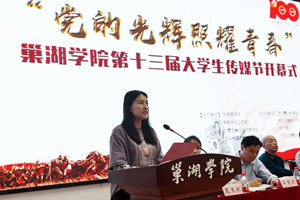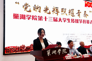 优秀指导老师代表,文教学院张萌萌发言,她表示,传媒节的意义在于师生共同提高、共同成长,并围绕主题表达、拍摄类型、剪辑方式三个方面分享了指导短视频创作的心得体会。18级广播电视学专业学生陶静静作为上届传媒节获奖学生代表发言,她分享了参加大学生传媒节的经验和感受,倡议同学们多参加学科竞赛,以学习为本职,脚踏实地、志存高远。