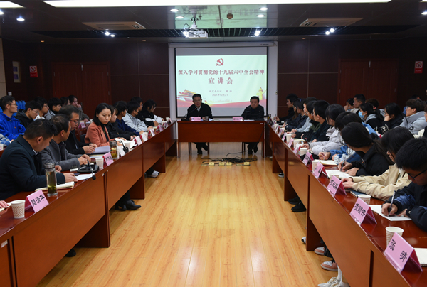 12月2日下午,校党委书记周峰在第二会议室宣讲十九届六中全会精神,宣传部、学工部、团委、保卫与校园管理处等单位负责人和60名学生代表参会,会议由校党委委员、宣传部部长余洁平主持。