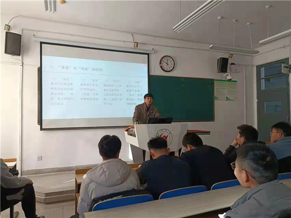 为全面贯彻落实习近平总书记在全国学校思政课教师座谈会、党史学习教育动员大会上的重要讲话精神,深入推进党史学习教育,充分发挥领导干部在党史宣讲中的示范带头作用,按照学校2021-2022学年度第一学期“形势与政策”课教学计划安排,12月20日至24日,校领导纷纷走进《形势与政策》课堂,聚焦《中共中央关于党的百年奋斗重大成就和历史经验的决议》(以下简称《决议》),为2021级学生宣讲党的十九届六中全会精神。