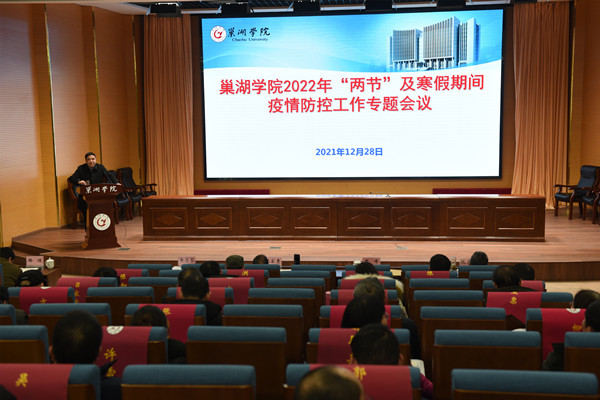 会议学习传达了上级有关疫情防控文件精神和安巢经开区“两节”期间疫情防控工作专题会议精神,通报了近期学校疫情防控工作开展情况和校园防控形势,安排部署学校“两节”及寒假期间疫情防控工作。