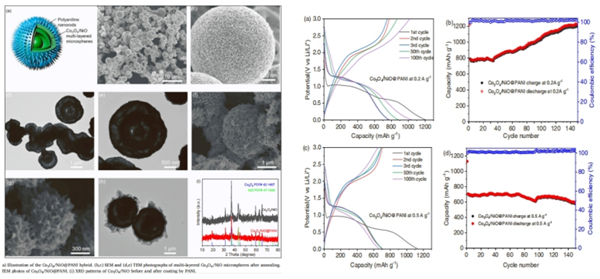 近日,化材学院柔性储能材料和器件科研团队彭贞老师在锂离子电池负极材料的研究中取得新进展,相关研究成果以“Engineering a polyaniline nanoneedles-coated multi-layered Co3O4/NiO microsphere as high-performance Li-ion battery anode” 为题发表在国际权威期刊《Journal of Alloys andCompounds》(中科院2区,影响因子6.2)