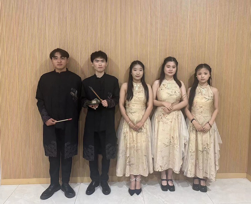 团体组决赛参赛曲目《古巢国游记》由王佩琦老师专门为“敲开心”扬琴重奏团创作,灵感来源于古巢国历史遗迹,用人声融入扬琴重奏展现了神秘灵动的古巢文化。该曲目获得现场评委和观众一致好评。赛后,获奖选手和来自各地的扬琴演奏家以及国际友人齐聚一堂,共同为大家展演音乐曲目,活动不仅包括高水平的专业竞赛,还安排了多场不同国家扬琴艺术的专题讲座和音乐会,极大地拓宽了我院学子们的专业视野。