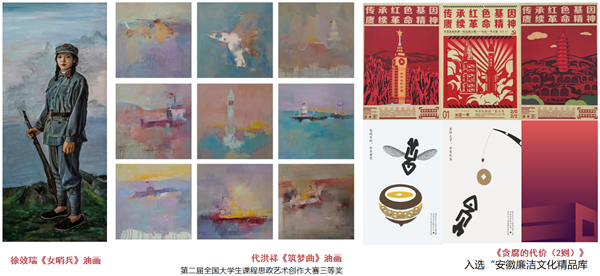 学院紧扣时代发展脉搏,创新课程思政教学方式,探索课程思政深度融入实践教学新路径。以“主题创作”为抓手,将红色题材、乡村振兴等融入师生艺术创作中,师生聚焦主题创作,以美育人成果丰硕。近三年,我院教师1 幅作品被中央党史馆收藏,4 幅作品被北京新文化运动纪念馆收藏。学生主题创作获得国家级省级奖项20余项,获批省级、校级课程思政教学团队各1项;校级课程思政教学大赛三等奖、优秀奖4项。
