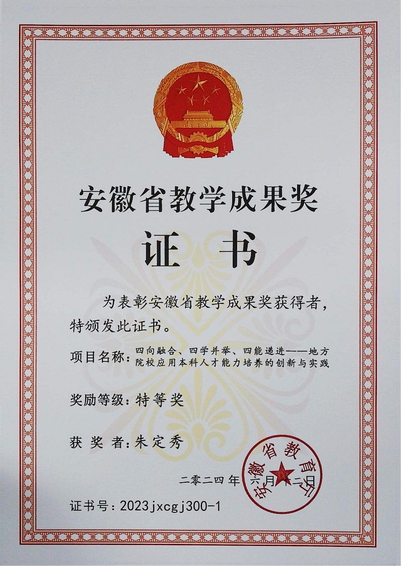 筑牢“四向融合”能力培养结构。学校主动服务地方经济社会发展,立于思政、专业、社会和创新创业四维教育方向,联合相融,多措并举,形成育人合力。在思政教育上,加强课程思政和思政课程建设,构建“大思政”育人格局,实施“三全育人综合改革”,深化“课程思政教学改革”,以教会学生“学会做人”。在专业教育上,以一流专业建设为牵动,发挥多学科专业优势,推动交叉复合人才培养,实施主修、辅修和微专业三结合,以教会学生“学会做事”。在社会教育中,扎实推进产教融合,实施服务环巢湖五年行动计划1.0和2.0版,落实本科教学和学科建设双质量工程,精心打造“一院一镇一品”社会服务品牌,实现内外融通培养,以教会学生学会共处。在创新创业教育上,以融入能力培养全过程为轴心,以完善理论体系和实践体系为两翼,注重课程育人、竞赛育人、项目育人、文化育人,以教会学生学会发展。