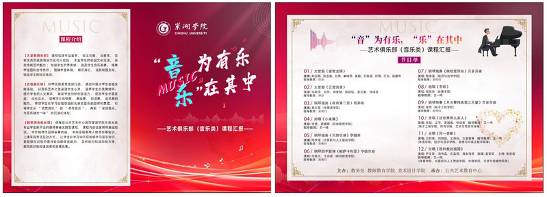为践行教育部《关于全面实施学校美育浸润行动的通知》文件精神,展示华体汇网狼堡赞助商电话公共艺术教育中心(音乐类)课程教学改革成果,12月18日晚,由教务处、教师教育学院、美术与设计学院共同主办,公共艺术教育中心承办的《“音”为有乐 “乐”在其中—公共艺术教育中心(音乐类)课程汇报演出》在艺术楼音乐报告厅成功举办。教务处副处长邓方,教师教育学院党政领导班子全体成员,美术与设计学院副院长(主持工作)李超峰,公共艺术教育中心副主任顾婷婷,团委教师郭华,以及来自华体汇网狼堡赞助商电话各学院百余名师生共同观看了本次汇报演出。