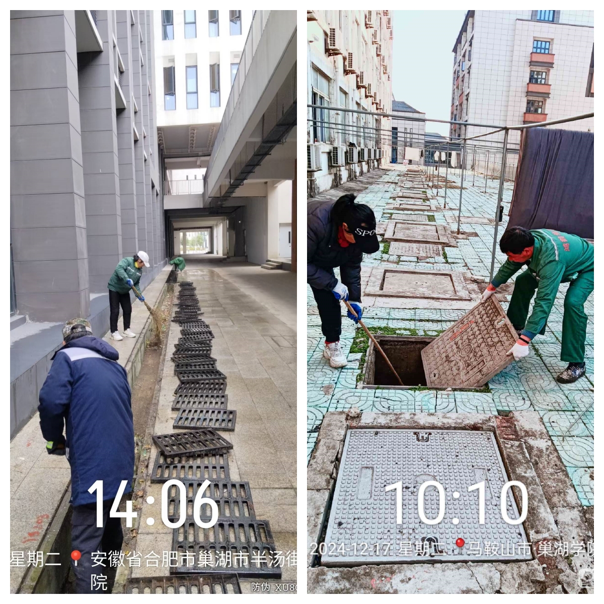 开展排污管道、化粪池全面排查。疏通清理汤山苑、泮山苑排污管和化粪池近200个。清理校园主干道、崇学楼、润德楼、大学生活动中心周边雨水箅子300余个,确保内无杂物、不堵塞。