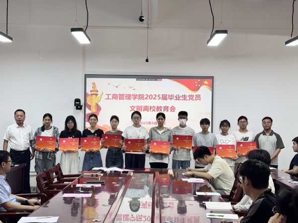 5月14日,工商管理学院党委在博学楼一楼会议室召开2025届毕业生党员文明离校教育会。党委书记管超,党委副书记、院长陶有田出席会议,114名毕业生党员参会,会议由组织员葛晓龙主持。