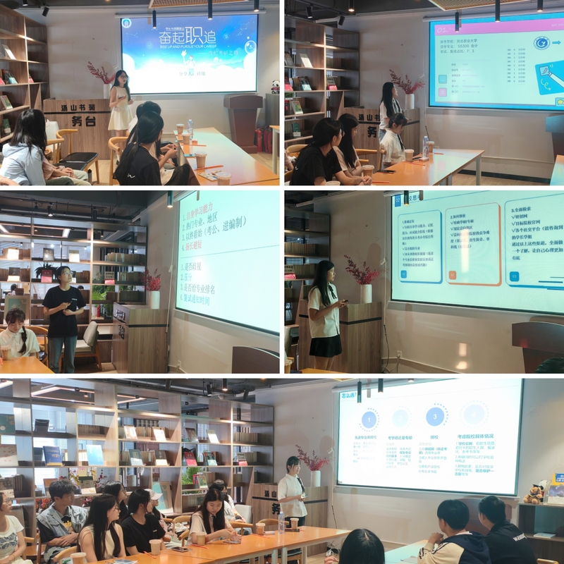 李阳简要介绍本次活动目的,强调考研对同学们个人发展的重要意义,希望通过此次活动为同学们提供考研经验借鉴。随后,王思进、商敏、王甜甜、胡维敏、赵文枝几位毕业生依次上台,她们结合自身实际经历,详尽地讲述自己的考研历程,从如何选择考研院校和专业,到制定详细的备考计划,再到备考过程中如何调整心态应对压力等方面,都进行了细致的分享,为同学们提供了许多实用的建议和方法。