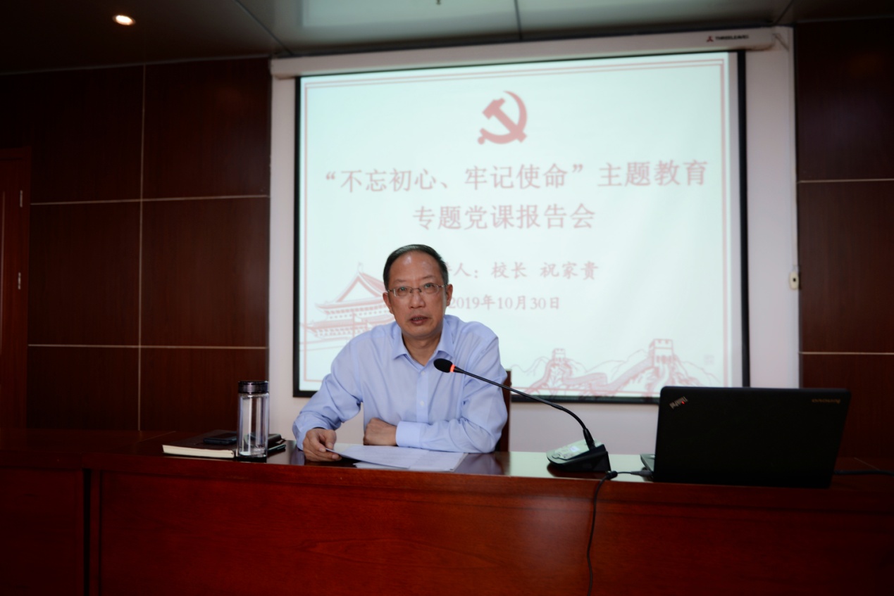 为贯彻落实中央和省委“不忘初心、牢记使命”主题教育精神,10月30日下午,校长祝家贵在第二会议室作题为“坚守初心找差距 牢记使命抓落实”的专题党课报告,发规处、财务处、工商学院教工党员及处级以上干部聆听了报告。