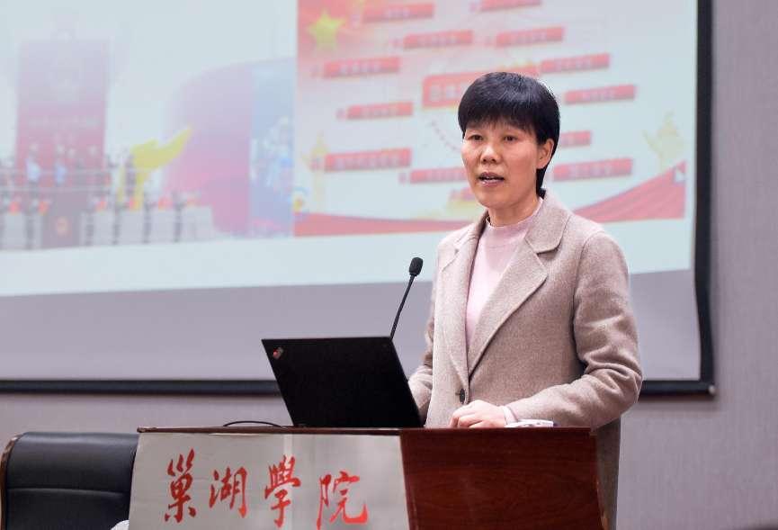 张莉以《学习宣传贯彻党的二十大精神,推进地方应用型高水平大学建设》为题,分别从充分认识党的二十大召开的重大意义、深刻领会党的二十大精神的丰富内涵、全面贯彻党的二十大精神的基本要求、推进地方应用型高水平大学建设四个方面对二十大精神进行了阐述,对大会精神进行了详细和充分的解读。张莉指出,党的二十大精神思想深邃、内涵丰富、博大精深。广大师生要在全面学习、全面把握、全面落实上下功夫,准确领会大会精神实质和核心要义,要结合工作实际,坚定不移地把党的二十大提出的目标任务落到实处,切实做到学用结合、知行合一,真正把学习成果转化为推动学校各项事业发展的实际成效。