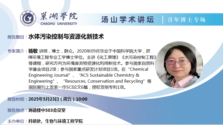 汤山学术讲坛青年博士专场第11讲:(5月23日:生物与环境工程学院杨敏博士讲座)