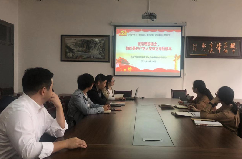 10月21日下午,机械工程学院教工第一支部开展“不忘初心,牢记使命”主题教育学习研讨活动。教工第一党支部全体党员参加,活动由支部书记王可胜主持。