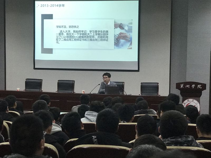 “礼多人不怪,证多不压身,大学期间多一分努力,面试时就多一分从容和自信。”张连新结合自己大学期间所参加的各类比赛以及获得的各类证书,用朴实真挚的话语讲述了他的求学和求职之路,感动全场。他结合机械专业的特点重点提醒广大同学们要注重培养处处争一流的意识;学好专业知识,拓展知识面,学会“无师自通”的能力,增强个人能力;加强团队合作精神与能力培养,为今后的脱颖而出打下基础。