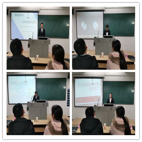 为提高学生上课效率,推进学风建设,12月15日晚,机械工程学院团总支青年志愿者协会、电子工程学院团总支青年志愿者协会、旅游管理学院团总支青年志愿者协会及化学与材料工程学院团总支青年志愿者协会联合举办的“无手机课堂”活动在慎思楼中102召开学风建设暨“无手机课堂”活动成果展示会,本次活动由旅游管理学院方可主持,特邀机械工程学院2019级辅导员方钱和电子工程学院2019级辅导员刘振撼作为嘉宾出席此次会议。