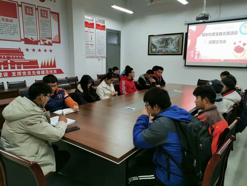 12月17日晚,机械工程学院团总支青年志愿者协会在致知楼二楼团总支会议室召开本学期城东小学科普支教总结会。本次会议由机械青协副会长傅德曹主持,支教志愿者参加会议。