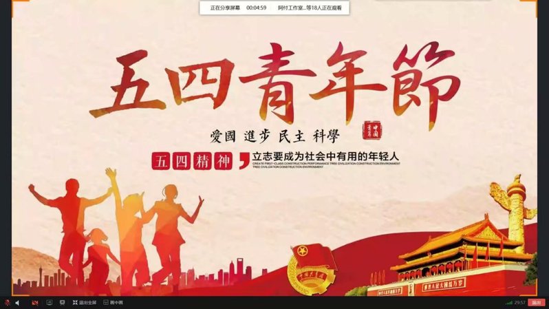 为纪念五四青年节,发扬五四精神,机械工程学院团总支青年志愿者协会于2020年5月10日下午举办“学习五四精神,争做有为青年”系列活动之我“讲”五四的PPT线上演讲比赛。出席本次比赛的评委有机械青协副会长李恩、宣传部部长丁森林、实践部部长崔召杰以及调研部部长梁修宇。