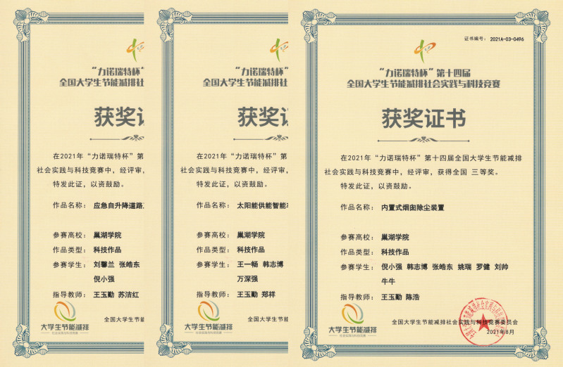截至2021年9月份,教工第三党支部全体党员教师共指导机械专业学生申报并立项2021年度国家级大学生创新创业4项、省级大学生创新创业6项;在第七届“互联网+”大学生创新创业大赛、第十四届全国大学生节能减排社会实践与科技竞赛等学科竞赛中,共荣获国家级三等奖3项、省级二等奖(银奖)4项、省级三等奖4项、校级一等奖3项;学生以第一作者发表学术论文3篇;试制样机6台(套);授权发明专利5项,实用新型专利16项。此外,2018级机自专业罗健同学荣获2020年度“安徽省百优大学生”称号并荣获“安徽省大学生年度人物提名奖”,2018级机自专业刘帅同学荣获2021年华体汇网狼堡赞助商电话“十佳大学生”称号(科技创新类)。