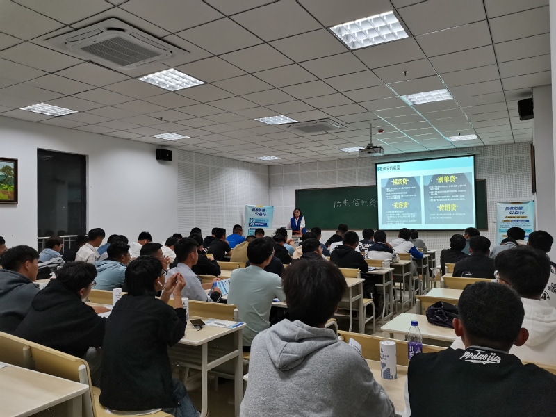 讲座伊始,王丽等老师先从校园贷款开始讲解,为我们介绍了不同的校园贷类型,通过不同校园贷款类型来引入电信网络诈骗的主题,并以幽默的方式来告诫同学们校园贷的危害。紧接着又通过网络诈骗的典型手段、网络诈骗的不同手段以及其身边的案例来加强同学们防电信诈骗的意识。随后又以问答的方式帮助我们了解正确的贷款方式,加深了我们对贷款的认知。接着,老师们还向我们介绍了电信网络诈骗的共同点并教授我们防骗口诀和向同学们阐述和推广正确的消费观念,并且教导我们上网时要谨慎,防止落入不法者的圈套。最后,老师们提醒学生安装“国家反诈中心APP”,实名注册并完善个人信息,注册地填写合肥-巢湖经济开发区,开通预警拦截功能。