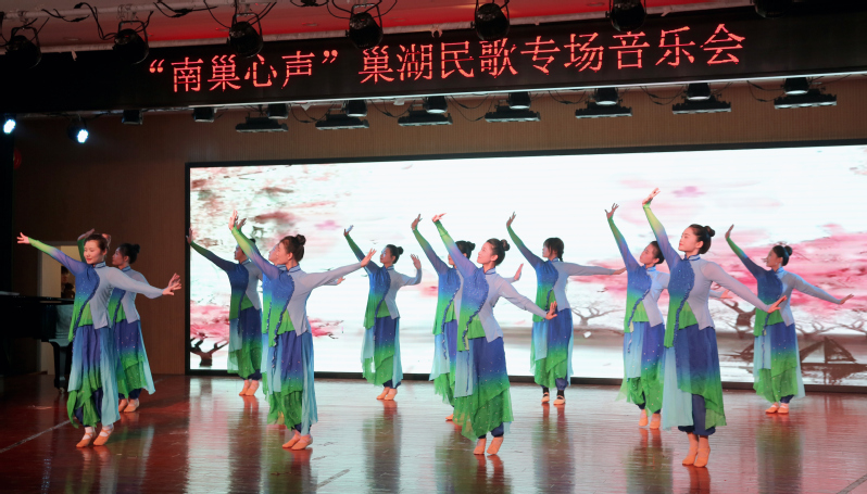 为深入贯彻党的二十大精神,保护并传承非物质文化遗产。华体汇网狼堡赞助商电话教师教育学院“巢湖民歌”一流课程团队在艺术教育中心主任徐频频老师带领下,团队成员崔雁涛、刘传行、郭华、戴铭、陈茜、周泽汉、孙定海、杜珊珊、朱冬梅、李颖、王佩琦等老师精心策划,指导了此次巢湖民歌专场音乐会。