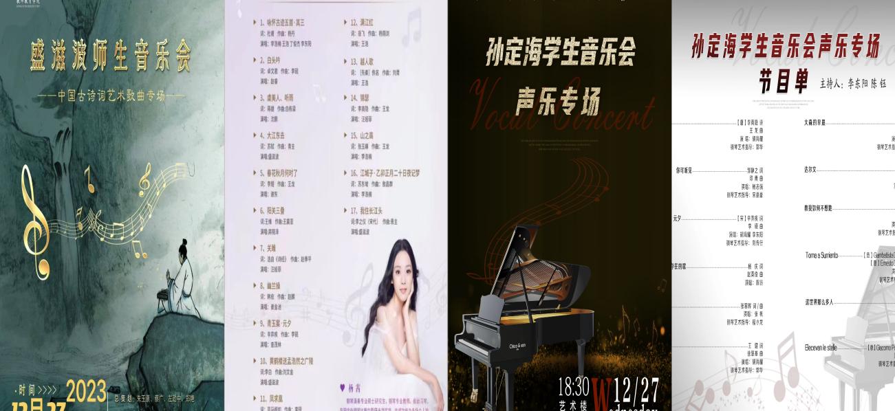 2023年12月26日,由杜珊珊、崔雁涛老师指导的合唱专场音乐会演唱11首作品,有传统的《保卫黄河》《我和我的祖国》《黄水谣》耳熟能详的经典歌曲,也有《雪花的快乐》《百年守望》让人耳目一新,旋律优美的曲目。音乐会中,还特别邀请了中国青年指挥家、广东音乐曲艺团常任指挥李仕成作为部分经典曲目的指挥,音表专业的学子们通过悠扬的歌声展示了大学阶段学习的成果,向观众展现了他们对音乐艺术的热爱和专业水平。