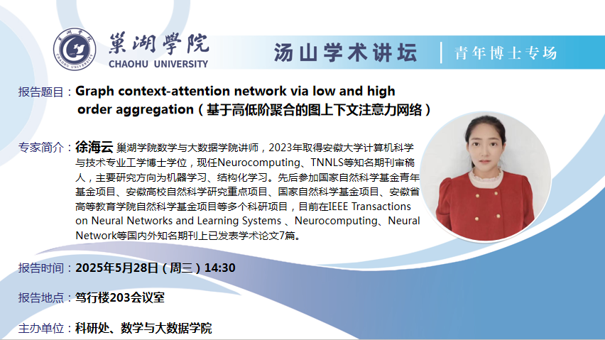 汤山学术讲坛青年博士专场第12讲:(5月28日:数学与大数据学院徐海云博士讲座)