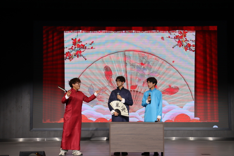 小品《非诚勿扰》表演中,同学们“戏精附体”,讨论爱情的真谛,表演得淋漓尽致,欢笑声洒满校园。