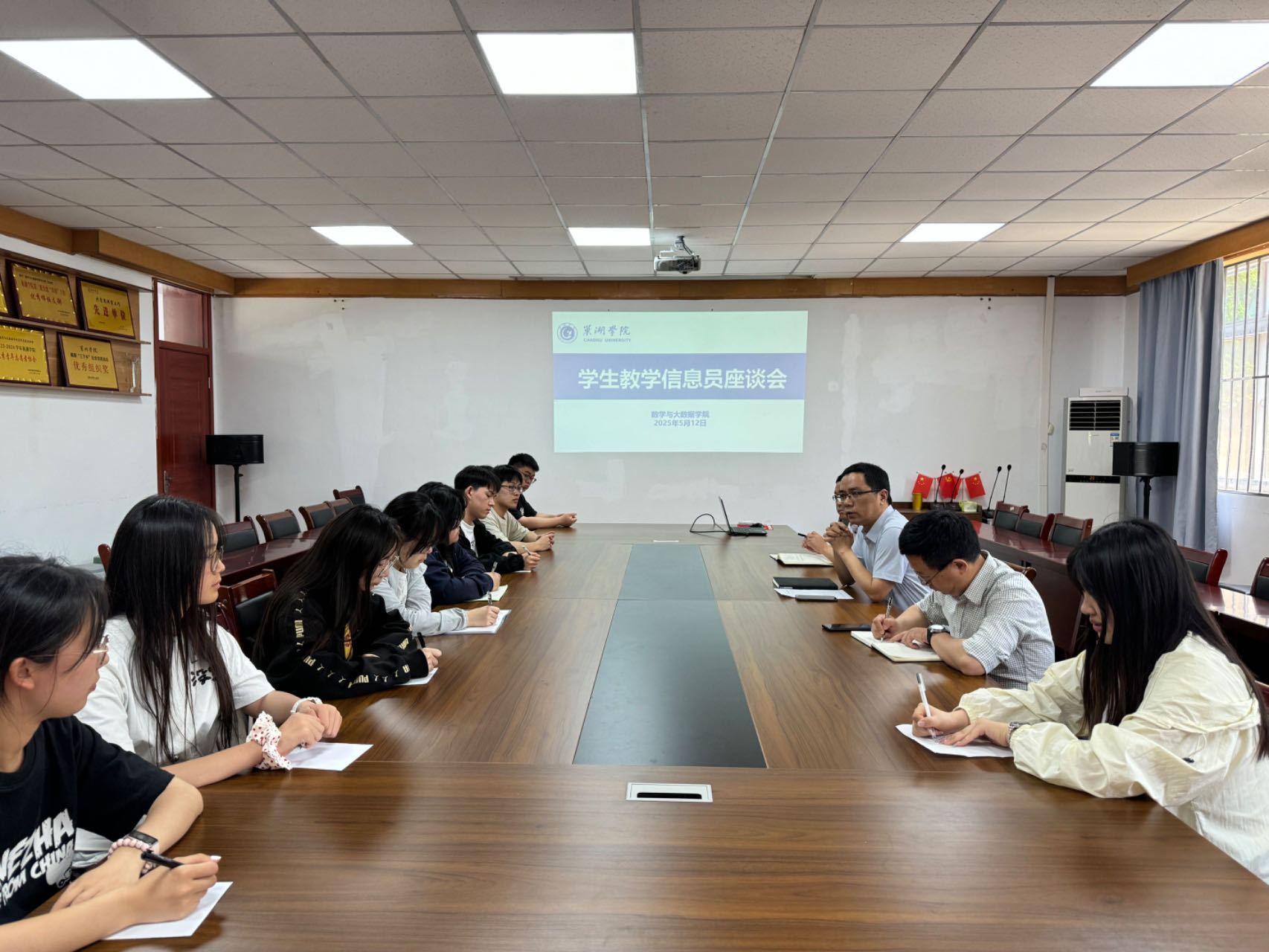 5月12日下午,数学与大数据学院在笃行楼203会议室成功召开2024-2025学年春学期第二次教学信息员座谈会。本次会议由学院副书记(主持工作)陈小波、副院长(主持工作)陈佩树、副书记郝江锋共同主持,参会人员包括22级、23级和24级全体教学信息员。