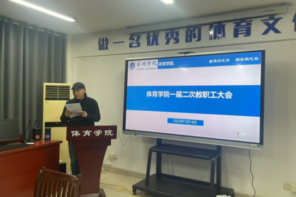1月14日,体育学院一届二次教职工大会在体育学院会议室召开。学院领导班子及全体教职工参加会议。