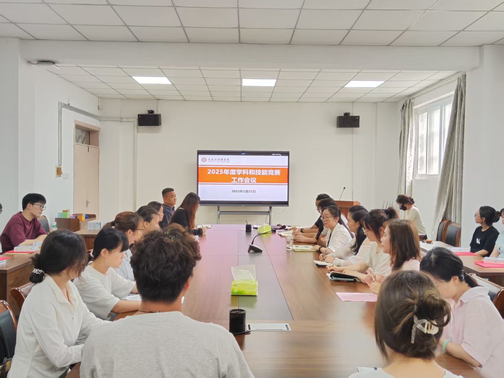 为总结2024年度学科和技能竞赛经验,推进2025年学科和技能竞赛工作,5月22日中午文学与传媒学院在敏行楼会议室召开了2025年学科和技能竞赛工作会议。院领导班子、各基层教学组织负责人、各专项赛事负责人、各年级赛长及部分获奖同学代表参加了此次会议,会议由学院团委书记程生风主持。