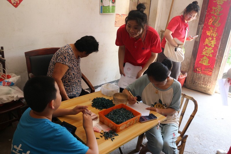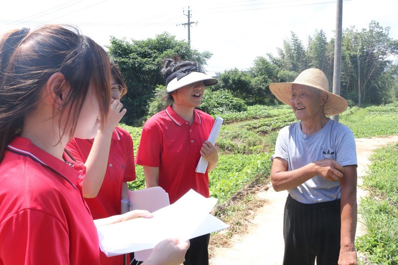 7月4日下午,实践团在无为市刘渡镇农林村内展开调研。成员们将调查问卷发放给村干部们,他们均对团队的推普进乡活动表示大力支持。在交流中,实践团成员了解到农林村村民主要以务农为生,大多半辈子都劳作在田间,加之受方言影响,加大推普下乡力度需久久为功。此外,村两委和驻村工作队扎根基层实干奉献的坚定信念和推普的决心意志。随后,实践团深入村民家中进行走访调研,以调查问卷和访谈交流的形式来了解当地普通话使用情况,对于村中不识字老人以口述形式进行访问。在走访过程中,队员们切身感受到当地普通话普及情况,推普这条路是长远、艰辛且充满现实意义。