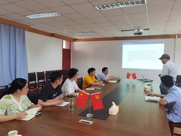 讲座伊始,陈佩树对杨卫国教授的到来表示热烈欢迎和衷心感谢,并对杨卫国研究领域和研究成果进行了介绍。随后,杨卫国教授开展题为《some researches on strongdeviationtheorems》的专题讲座,讲座以“强偏差定理的起源和含义”为主题展开讲解,杨卫国结合自身多年科研实践详细阐述了目前该领域取得的研究成果,分享了科研心得和感悟。会上,杨卫国教授耐心解答大家专业疑问,鼓励大家创新科研思维,戒骄戒躁,以持之以恒的态度面对科研。