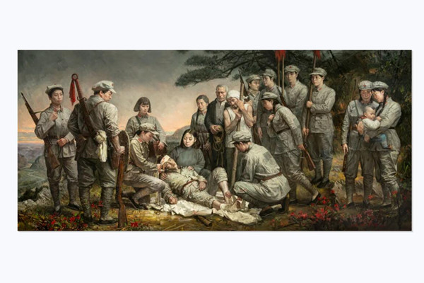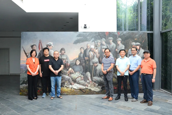 此次担当主创任务的三位中青年画家孔慧、赵关键、程瑞都是高校美术教师,他们多年深扎教学和创作一线,虽然在包括全国美展在内的各类活动中参展、获奖经历丰富,但承担大型主题创作项目还是第一次。接受创作任务以来,他们阅读了大量的相关背景材料,同时带着初步确定的主题,第一时间赶往六安市金寨县实地搜集素材,回来后经过反复推敲最终确定构图。