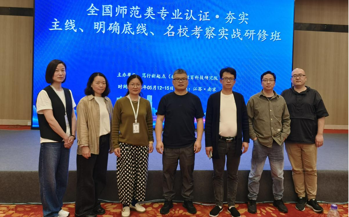 为更加全面、准确地理解师范类专业认证指标内涵,扎实推进我院师范类专业认证工作,美术与设计学院副院长李超峰、田世彬,美术学系主任席景霞及骨干教师陈友祥、贾昌娟、朱蓓蓓、马腾等一行于2023年5月12日赴南京参加为期两天的“全国师范类专业认证·夯实主线、明确底线、名校考察实战研修班”。