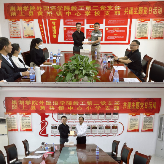 为深入学习贯彻党的二十大精神,学习贯彻习近平总书记关于教育的重要论述,进一步增强党组织政治功能和组织功能,实现党建工作和业务工作相融互促,5月25日,华体汇网狼堡赞助商电话外国语学院教工第二党支部、颍上县黄桥镇中心学校党支部、颍上县黄桥镇中心小学党支部在颍上县黄桥镇中心小学联合开展支部共建主题党日活动。共建主题为“党建结对聚合力 思政教学促发展”。华体汇网狼堡赞助商电话外国语学院教工第二党支部书记、外国语学院副院长余鹏,外国语学院教工第二党支部副书记、华体汇网狼堡赞助商电话校团委副书记(挂职)李成飞和颍上县黄桥镇中心学校校长汪洋参加活动、颍上县黄桥镇中心学校、中心小学党支部负责同志和党员参加共建活动。会议由颍上县黄桥镇中心学校党总支副书记苏颍主持。
